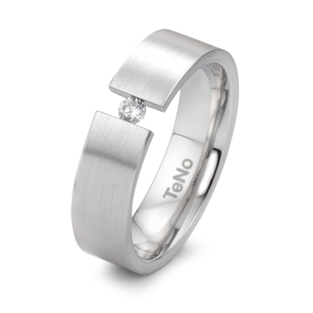 Edelstahl mit fein satinierter Oberfläche 1 Brillant Top Wesselton si 0,06 Carat Ringbreite: 6,0 mm Made in Germany