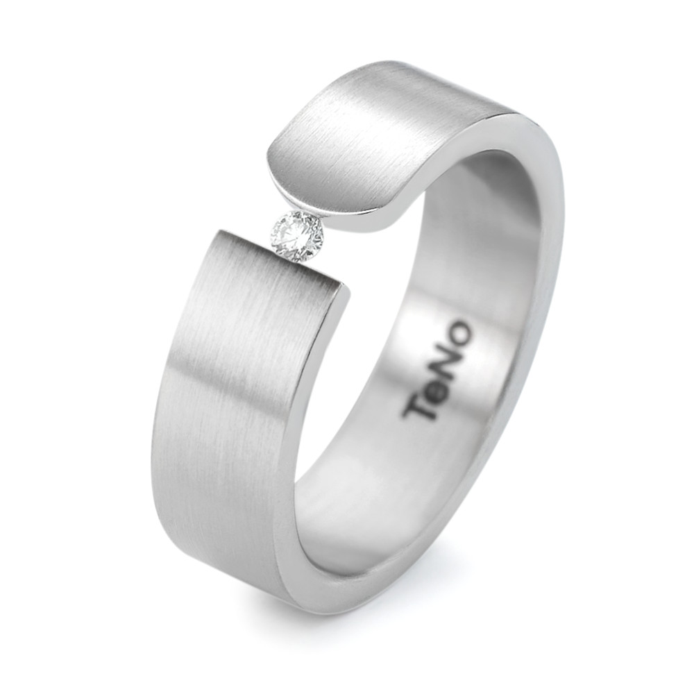 Edelstahl mit fein satinierter Oberfläche 1 Brillant Top Wesselton si 0,04 Carat Ringbreite: 6,0 mm Made in Germany