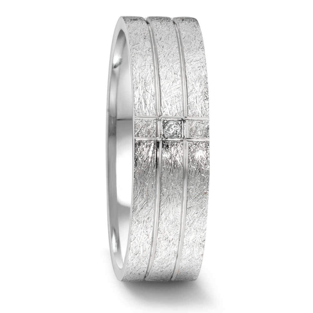 TeNo. Kollektion Yunis. Verlobungsring aus Edelstahl eismatt und poliert. 1 Brillant 0,02 ct. TW/SI. Breite 7,50 mm.