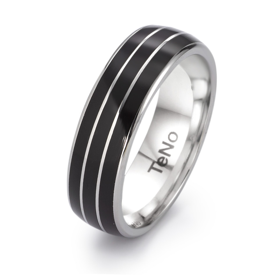 TeNo Partnerring TAMOR Edelstahl Keramik schwarz im Linien Design
