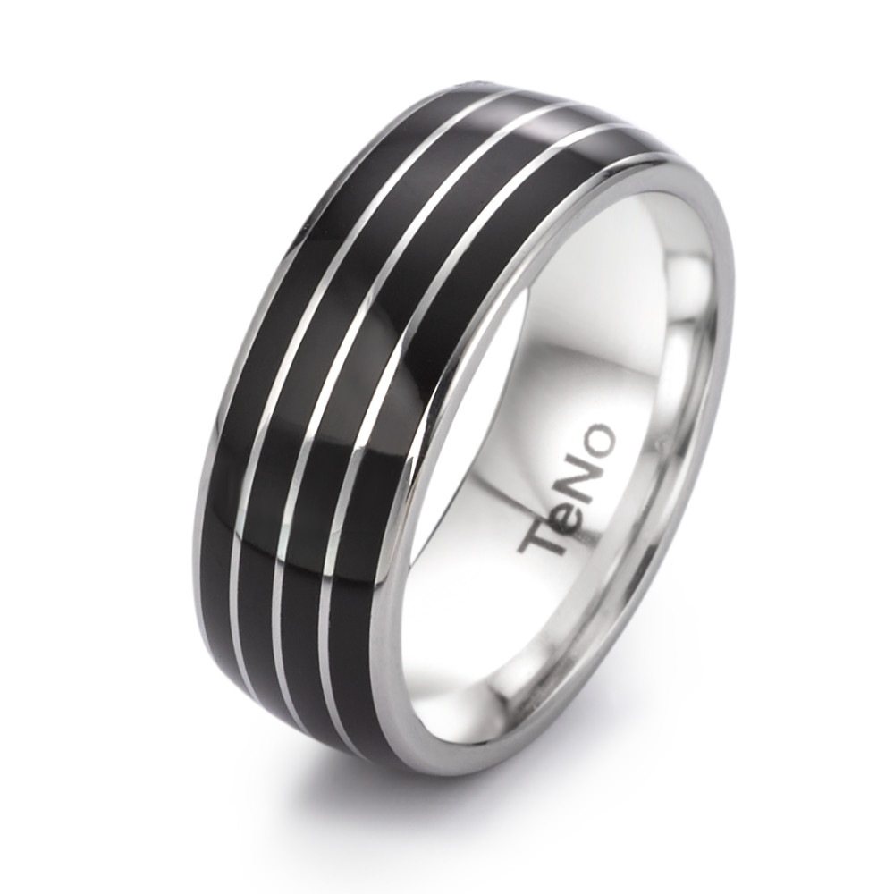 TeNo Partnerring TAMOR Edelstahl und Keramik im Linien Design