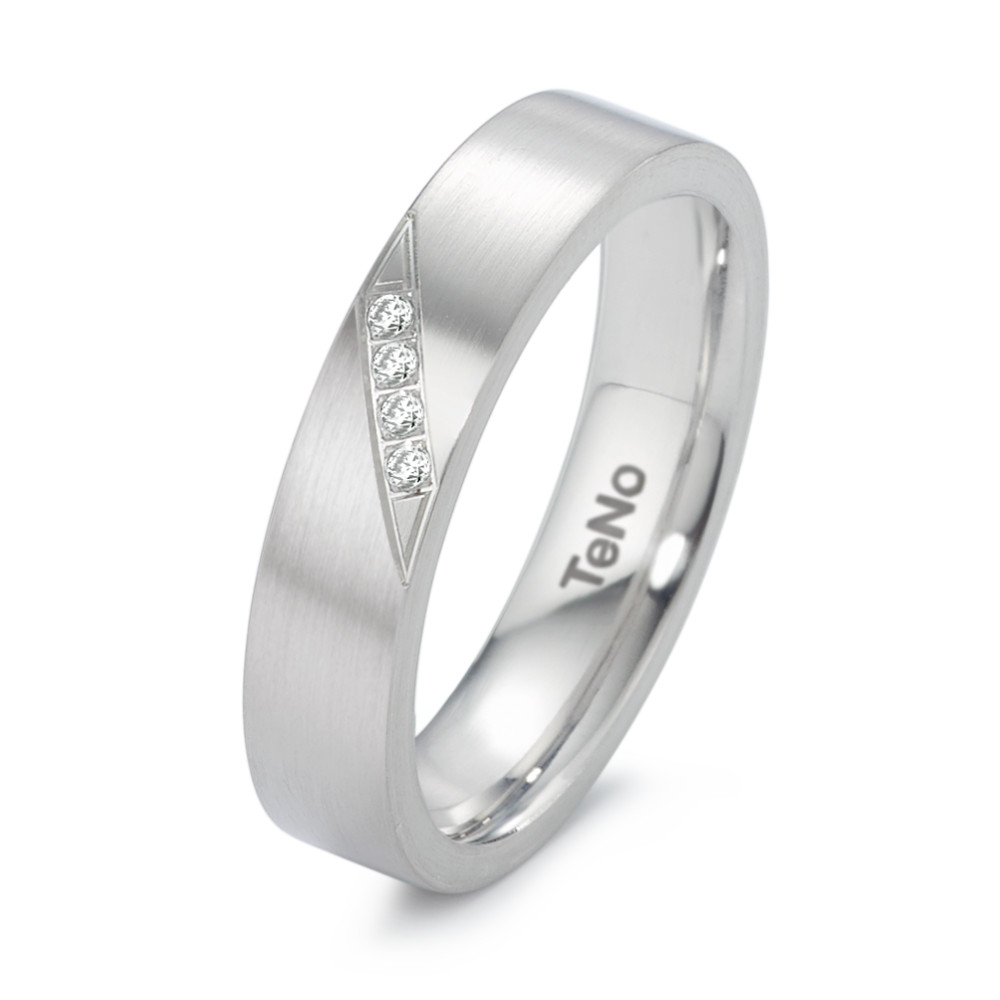 Edelstahl mit fein satinierter Oberfläche 4 Brillanten Top Wesselton si - Gesamtgewicht 0,032 Carat Ringbreite: 4,5 mm Made in Germany