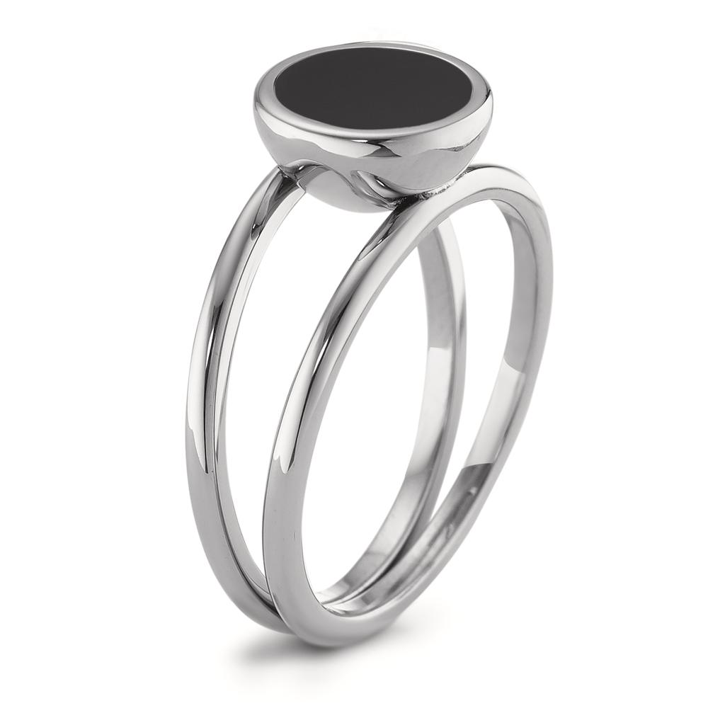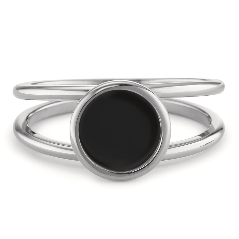 Klare Form, zeitlos und stilvoll: Der aus zwei Ringschienen verbundene Statement-Ring Yuna ist aus poliertem Edelstahl gearbeitet. Das Ringtop mit schwarzer Emaille bildet einen markanten Mittelpunkt und kann durch sein schlichtes Design wunderbar zu allen Outfits kombiniert werden.