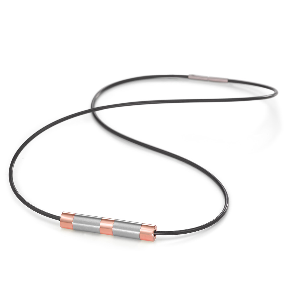 TeNo Kautschukcollier SPEAR, Anhänger Bicolor rosé, Edelstahl satiniert/poliert, Länge Anhänger 3,5 cm