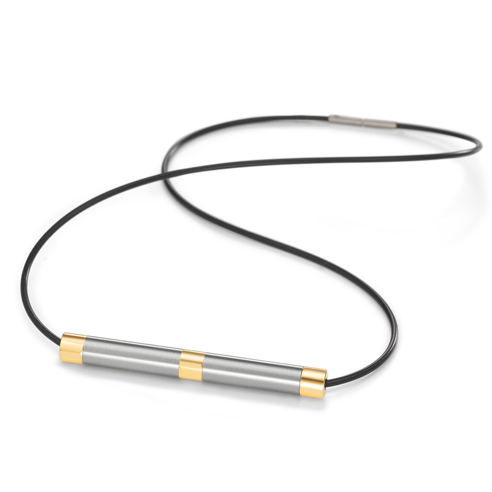 TeNo Kautschukcollier SPEAR, Anhänger Bicolor gelb, Edelstahl satiniert/poliert, Länge Anhänger 5,0 cm