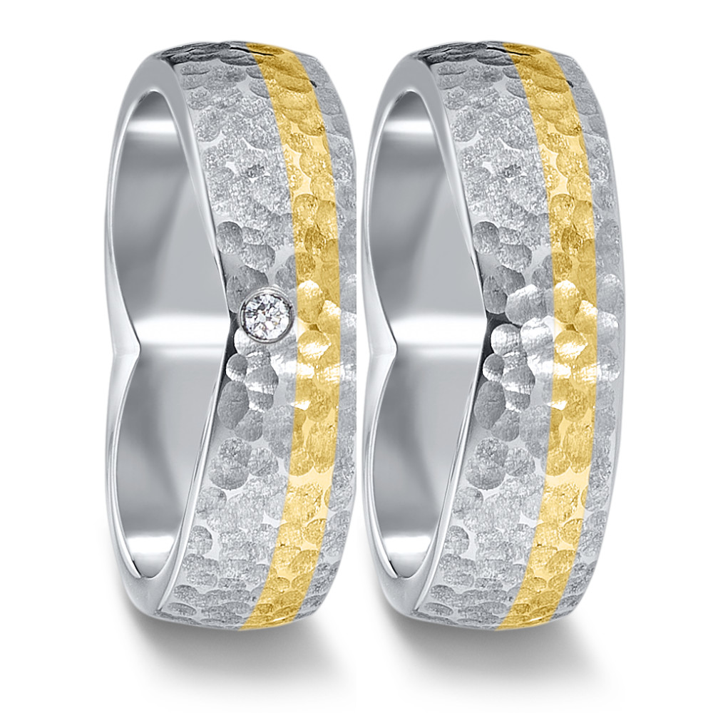 Partnerring Edelstahl, 750/18 K Gelbgold Diamant 0.02 ct