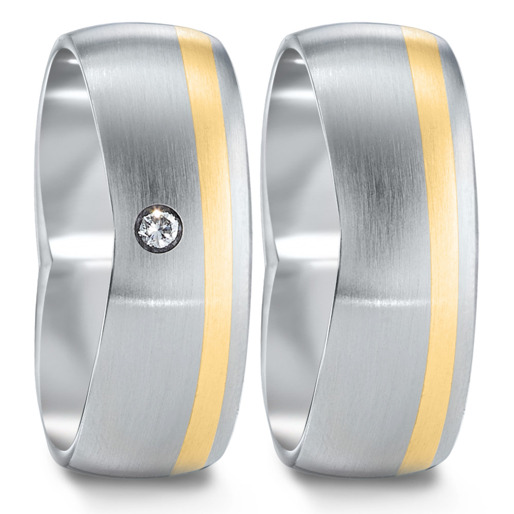 Partnerring Edelstahl, 750/18 K Gelbgold Diamant 0.04 ct