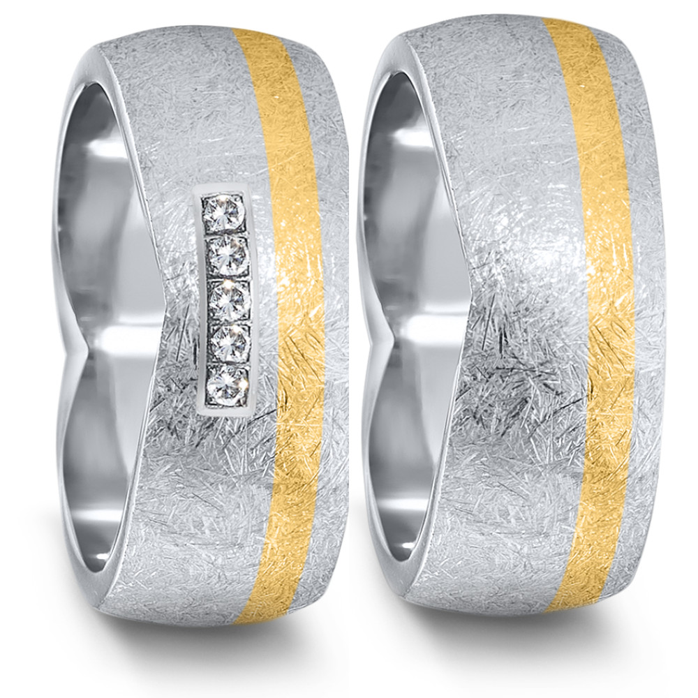 Partnerring Edelstahl, 750/18 K Gelbgold Diamant 0.06 ct