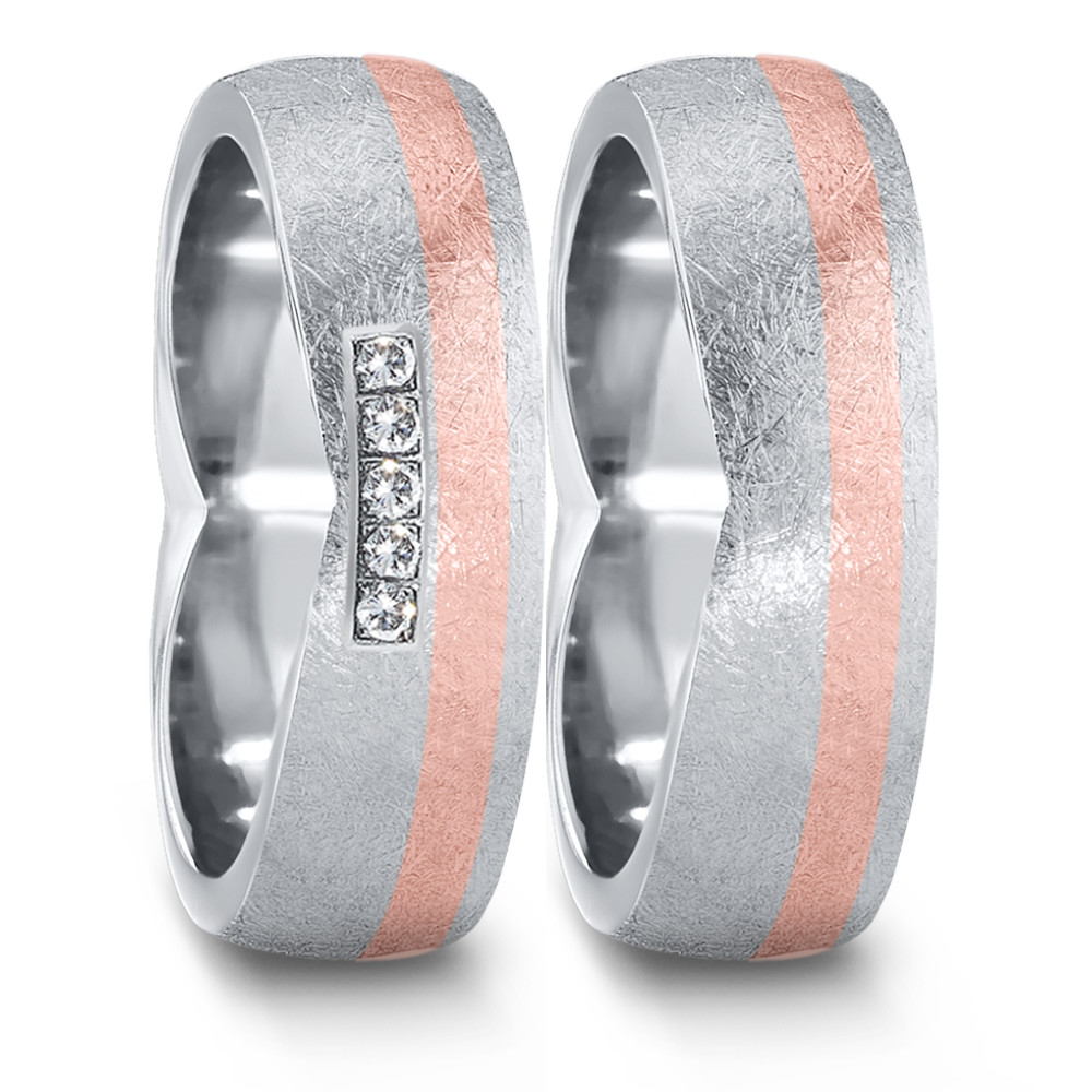 Partnerring Edelstahl, 750/18 K Rosegold Diamant 0.04 ct