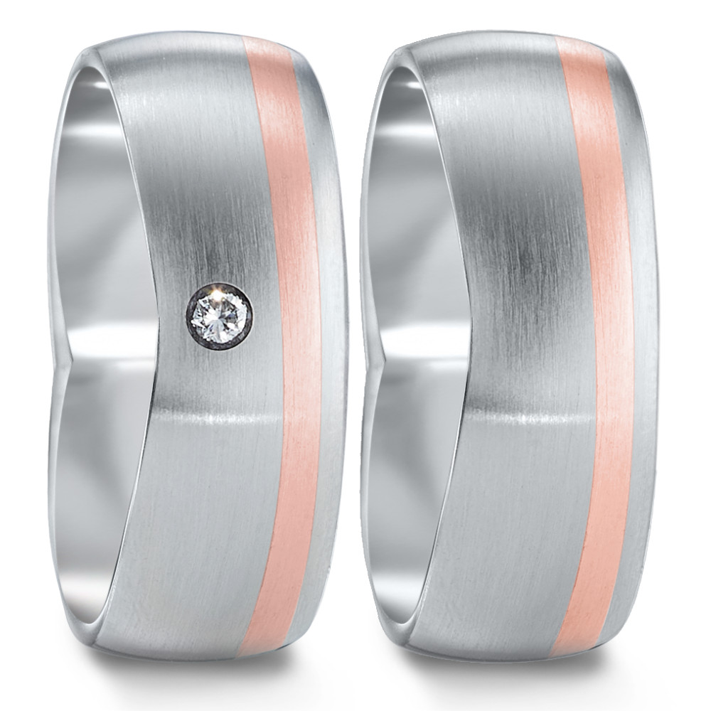 Partnerring Edelstahl, 750/18 K Rosegold Diamant 0.04 ct