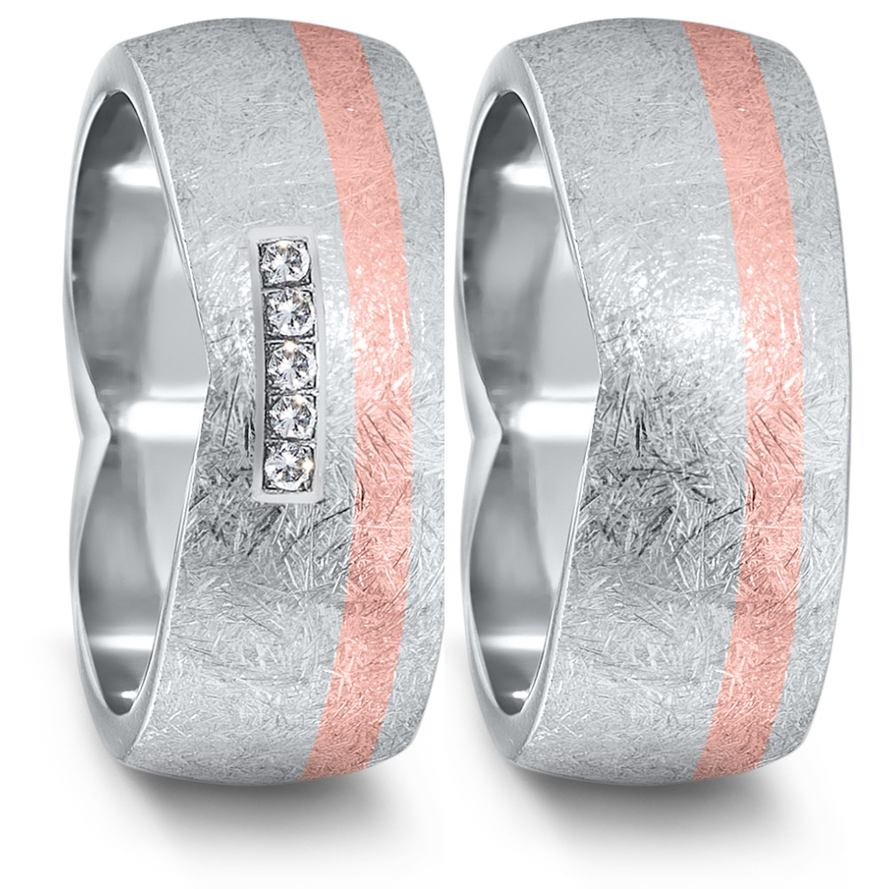 Partnerring Edelstahl, 750/18 K Rosegold Diamant 0.06 ct
