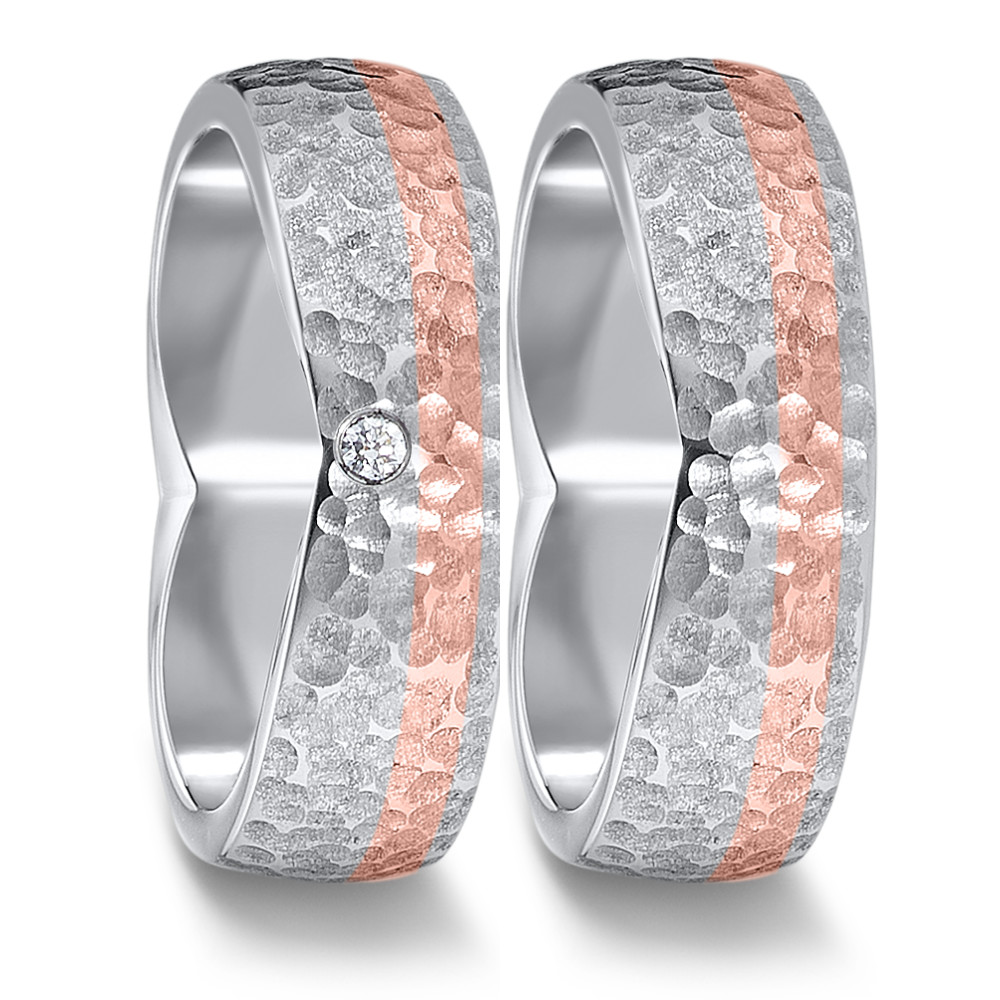 Partnerring Edelstahl, 750/18 K Rosegold Diamant 0.02 ct