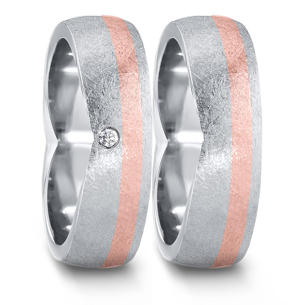Partnerring Edelstahl, 750/18 K Rosegold Diamant 0.02 ct