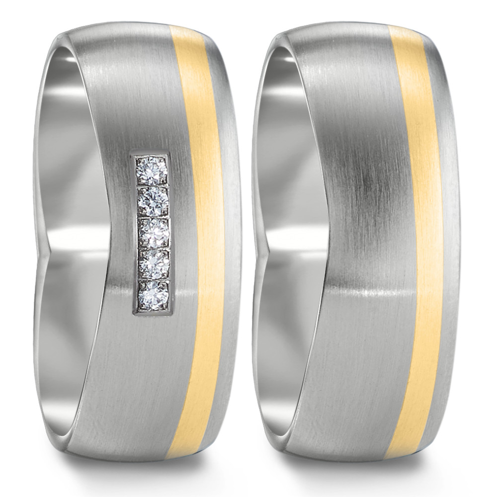 Partnerring Titan, 750/18 K Gelbgold Diamant 0.06 ct