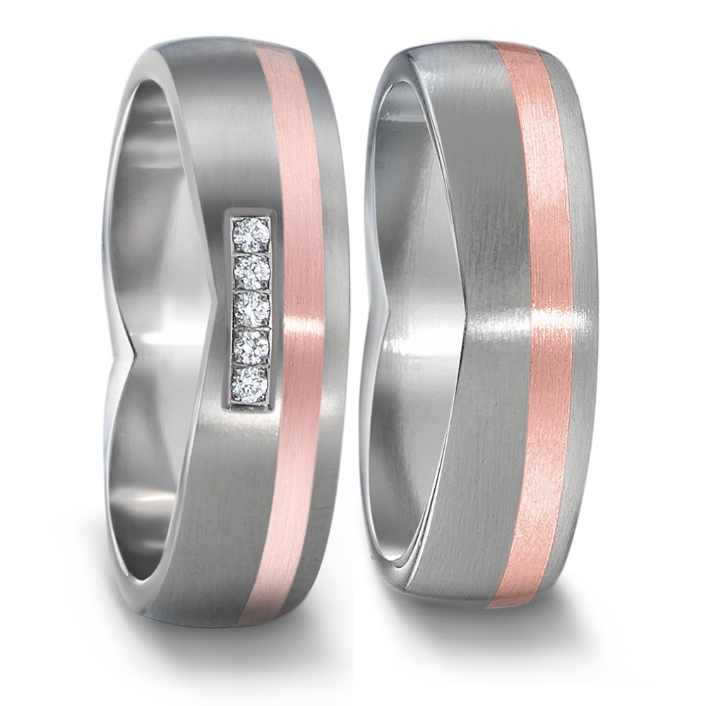 Partnerring Titan, 750/18 K Rosegold Diamant 0.04 ct