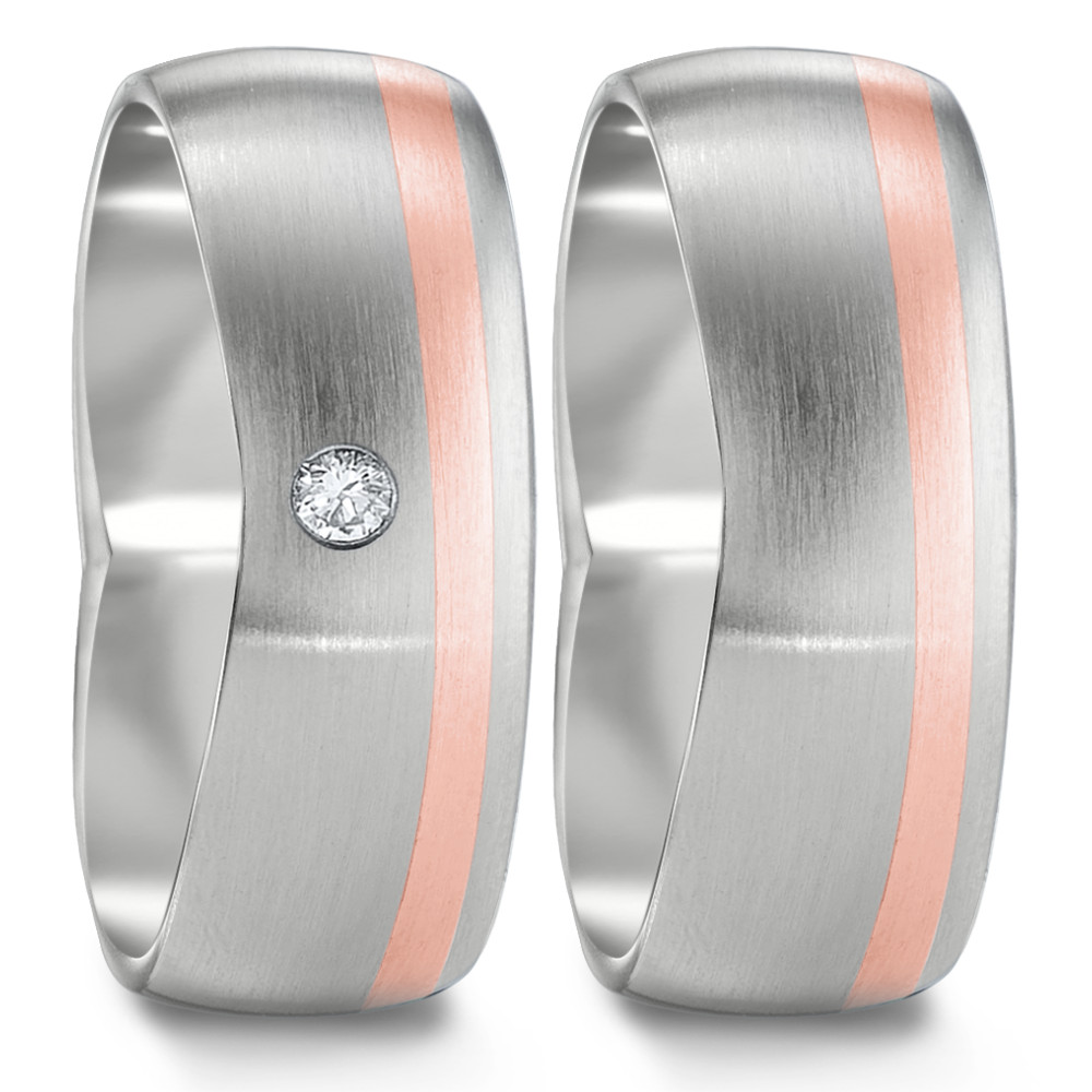 Partnerring Titan, 750/18 K Rosegold Diamant 0.04 ct