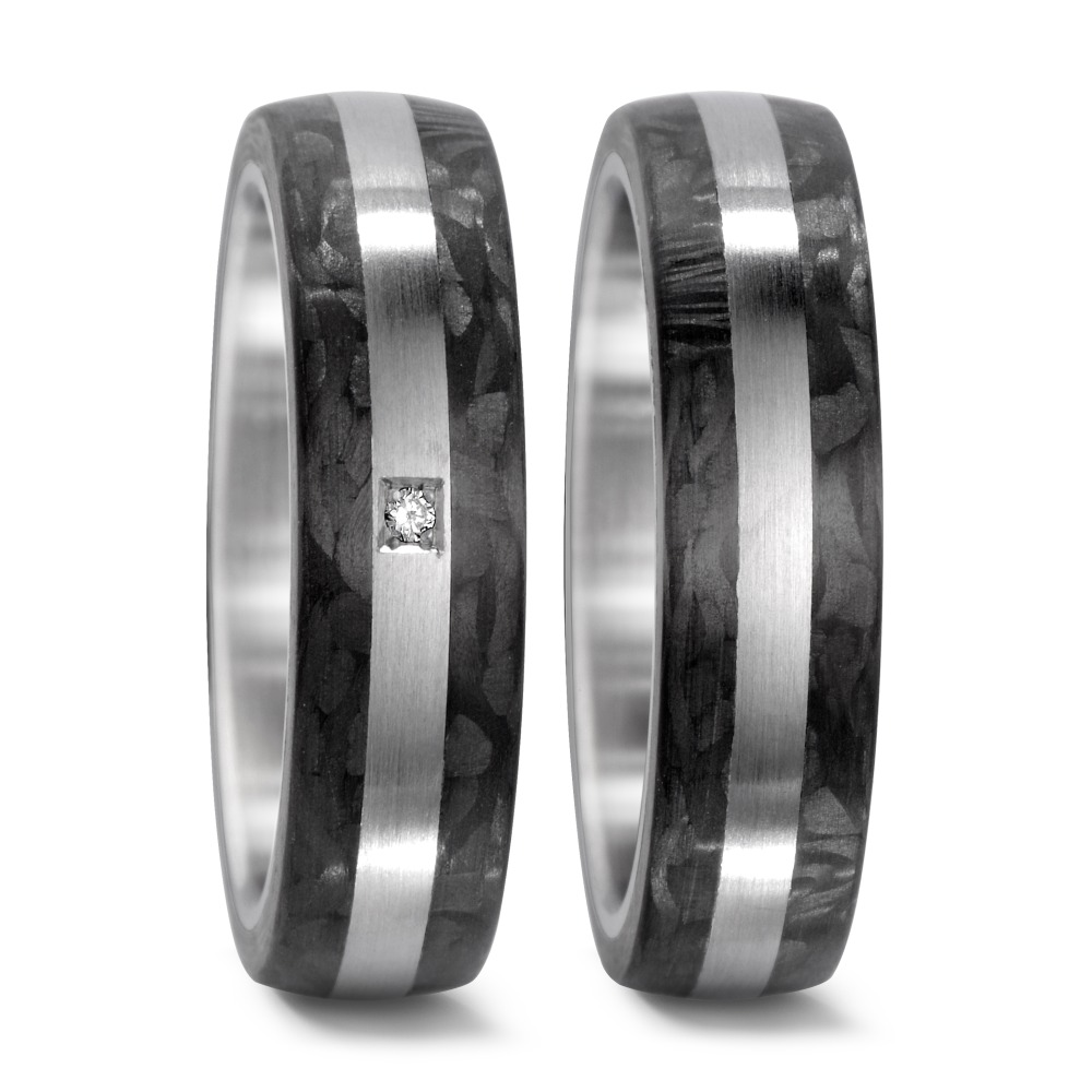 Partnerring Edelstahl, Carbon Diamant 0.02 ct