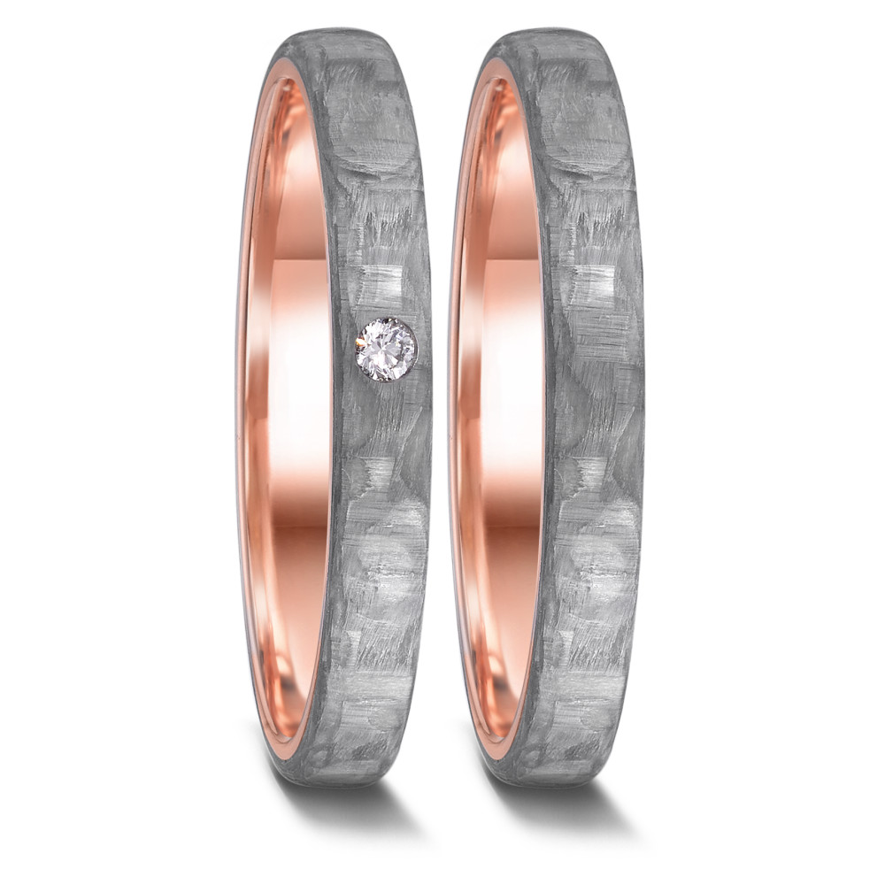 Partnerring 585/14 K Rotgold, Carbon Diamant 0.02 ct