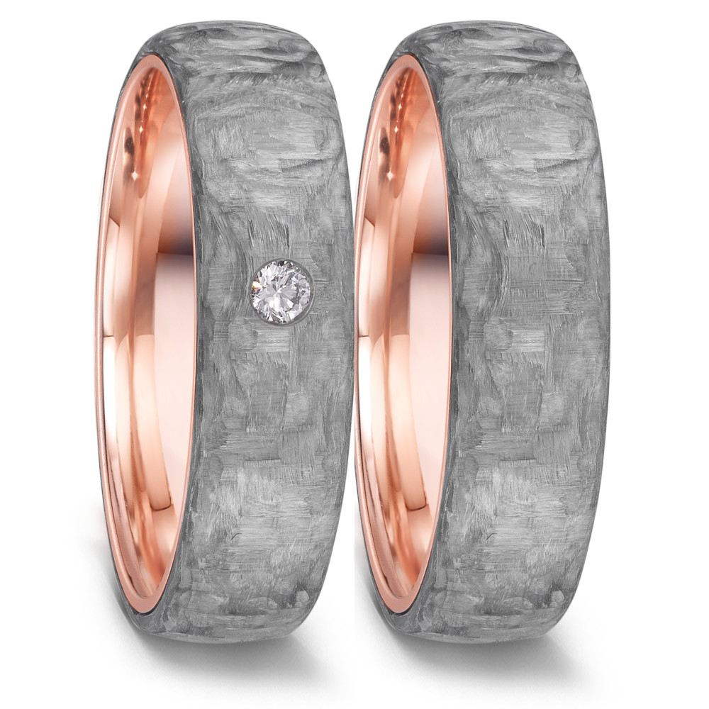 Partnerring 585/14 K Rotgold, Carbon Diamant 0.05 ct