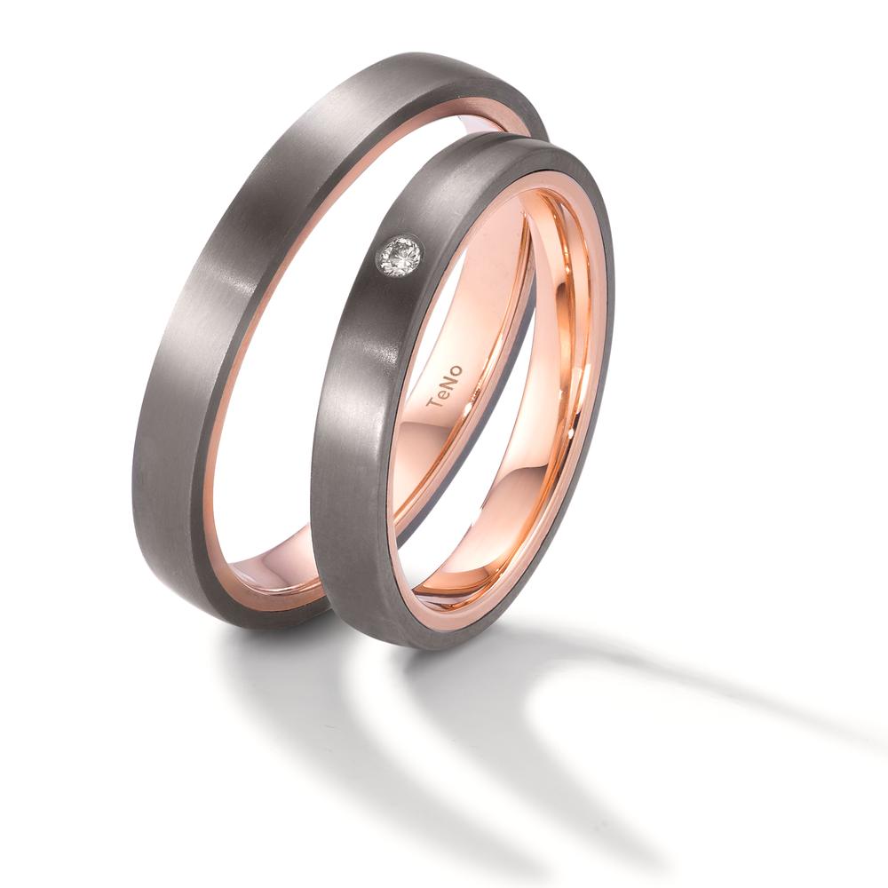 TeNo Love Ring 585/14 K Rotgold mit Tantal und Diamant 0.02 ct