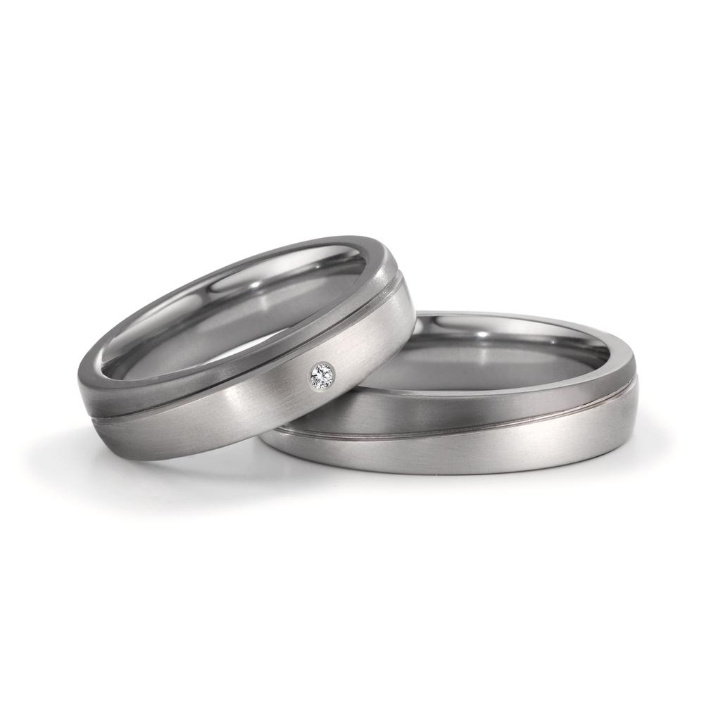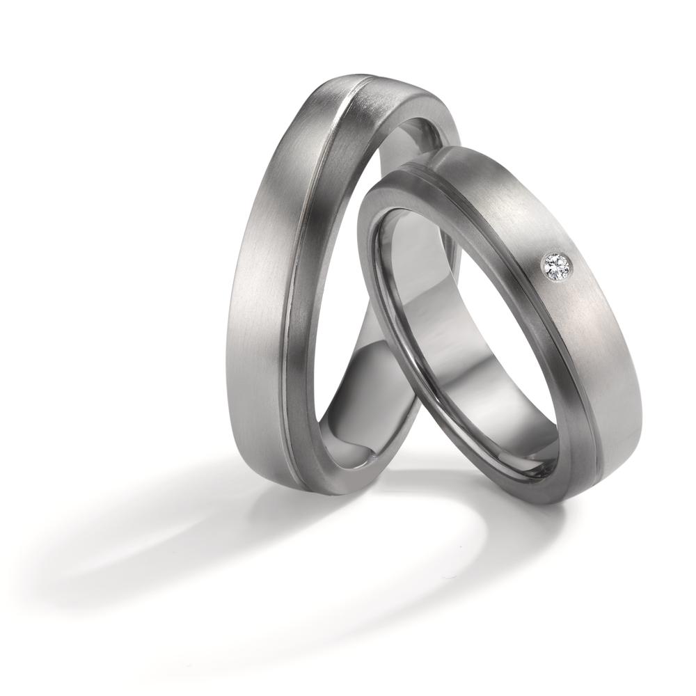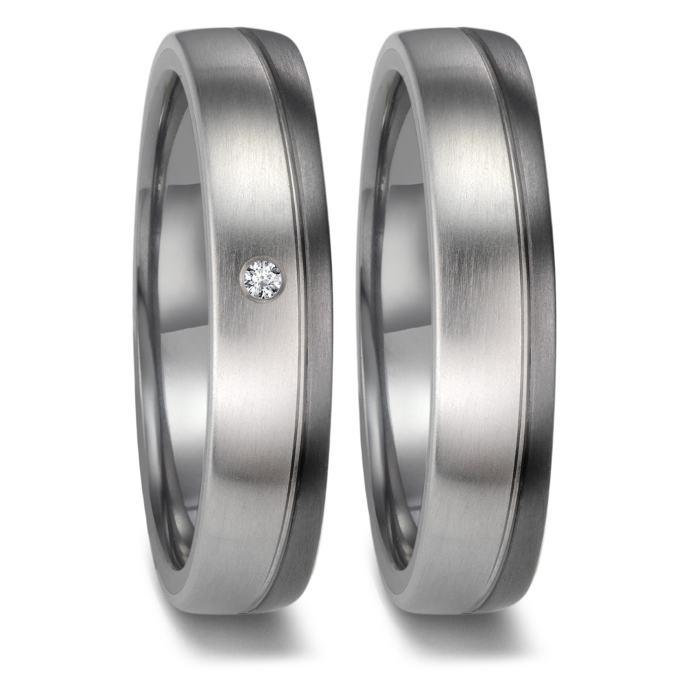 Tantal Trauring Avantgarde mit Platin 950 und Diamant 0.02 ct