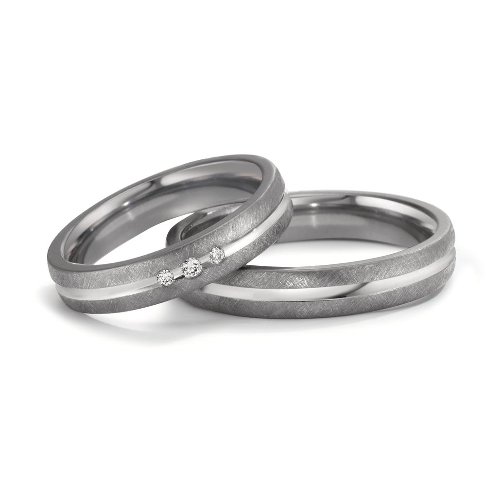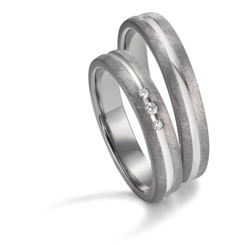 Tantal Trauring Avantgarde mit Platin 950 und Diamanten 0.04 ct