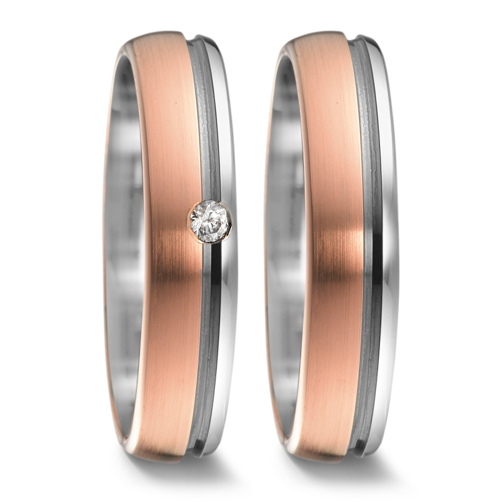 NEUER HERSTELLER: Weidner Trauringe aus Waldstetten. Zweifarbige, Ringe mit einer aussergewöhnliche Oberfläche aus Grau - Rosegold 585. 1 Brillant 0,05 ct tw-si.