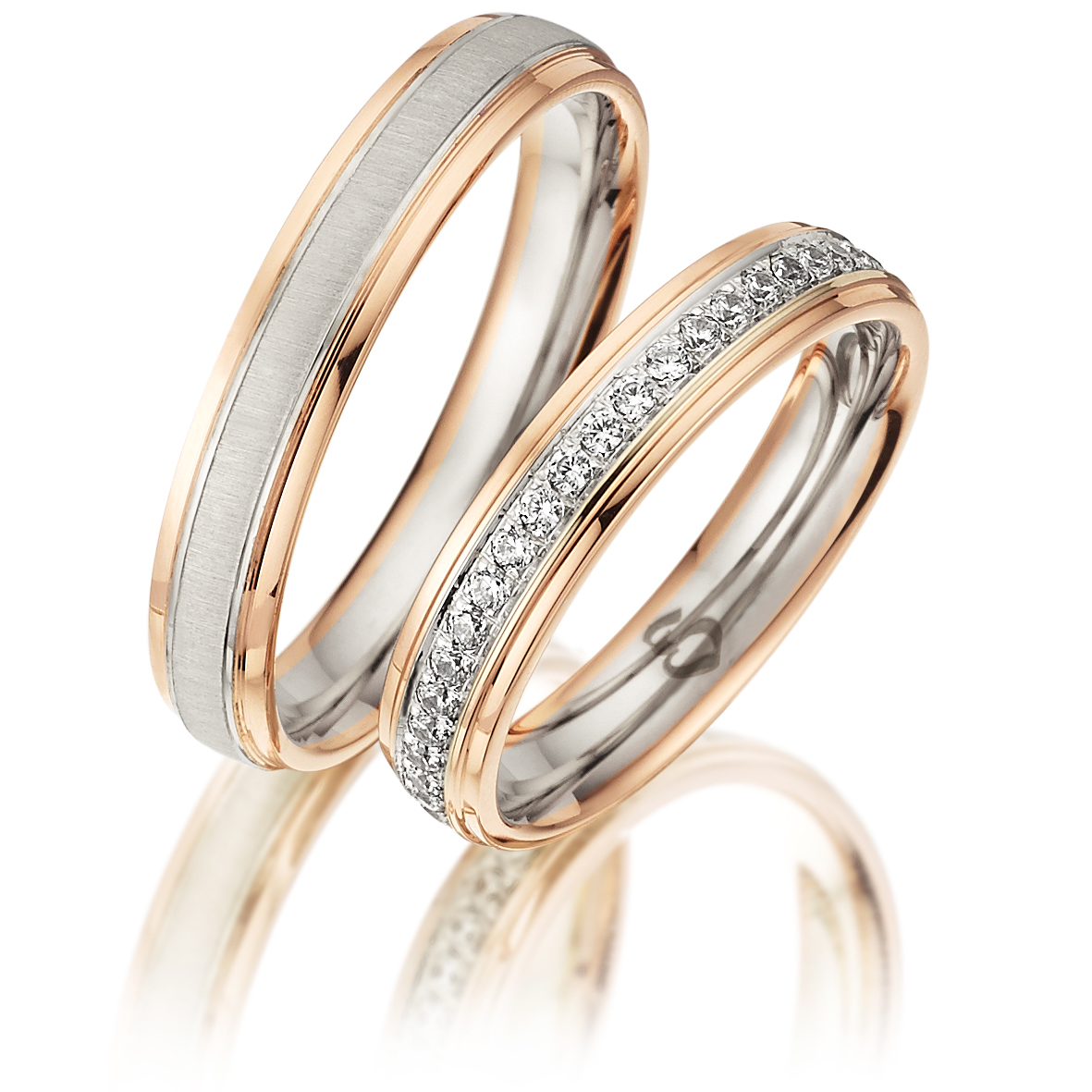 Simon & Söhne - MADE IN GERMANY aus Gütersloh. Kollektion aus der Serie Fantasy 2. In der vielfältigen Auswahl und qualitativen Design finden Sie mit Sicherheit ihre Taruringe fürs Leben. Sie können selbstverständlich auch die Ringe einzeln bestellen. Senden Sie uns hierfür eine E-Mail einfach zu. Exklusive Trauringe aus 375 Weissgold-Rotgold mattiert und poliert. Breite 4,00 mm. Gerne auch in weiteren Legierung, siehe Option-Feingehalt erhältlich.