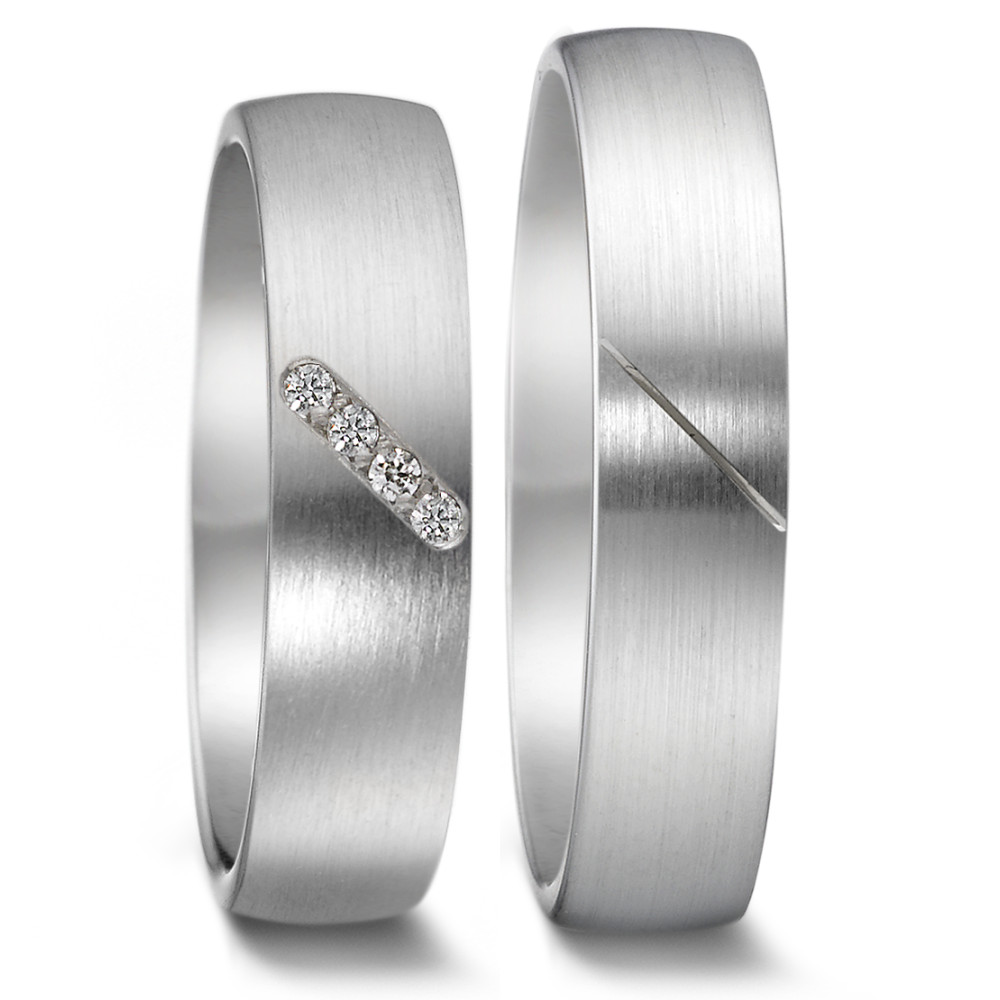 NEUER HERSTELLER: Weidner Trauringe aus Waldstetten. Klassische, schlichte Ringe aus Weißgold 375. 4 Brillanten 0,04 ct tw-si.