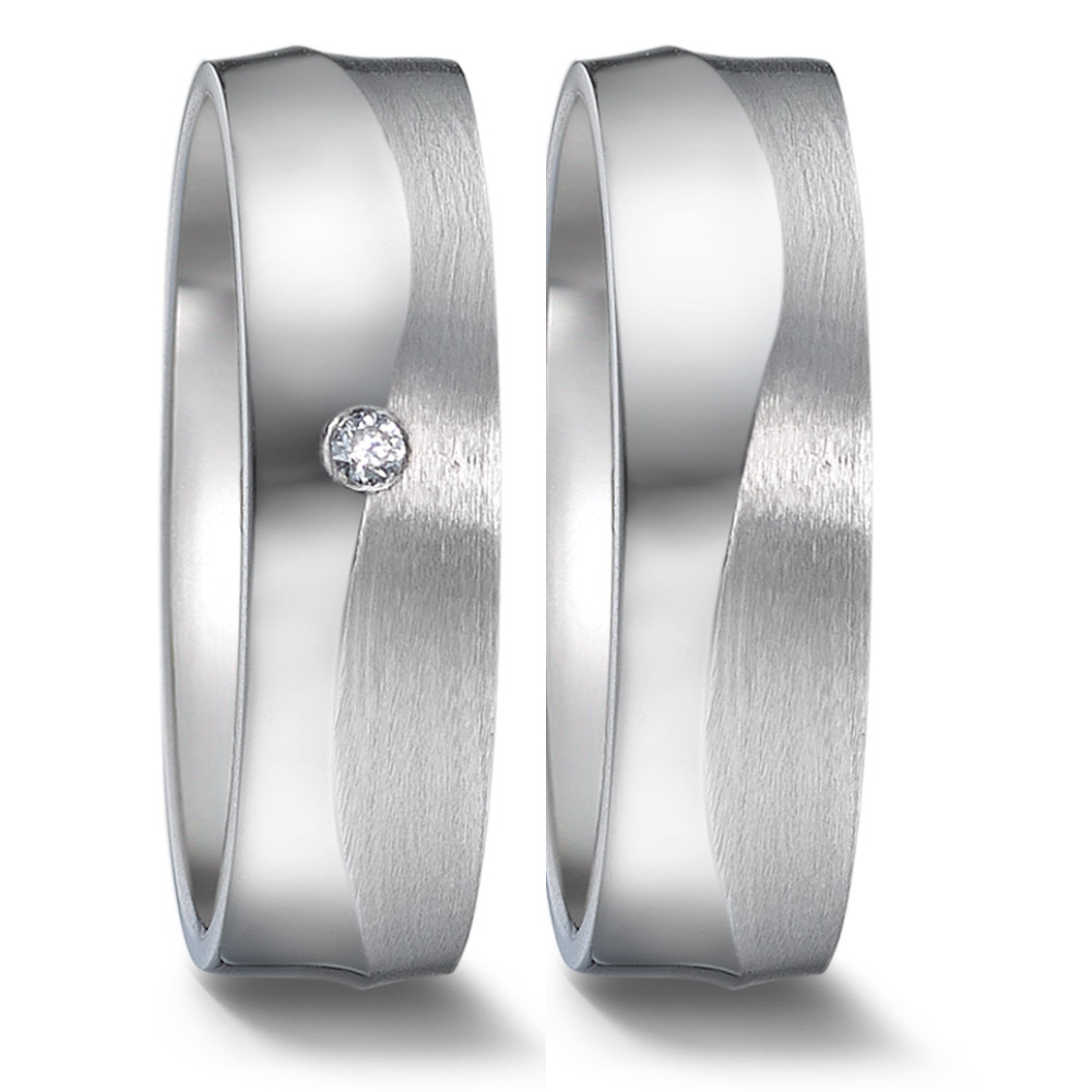 NEUER HERSTELLER: Weidner aus Waldstetten. 375er Weißgold mit 1 Brillant 0,02 ct tw-si. Geschwungen schlicht.