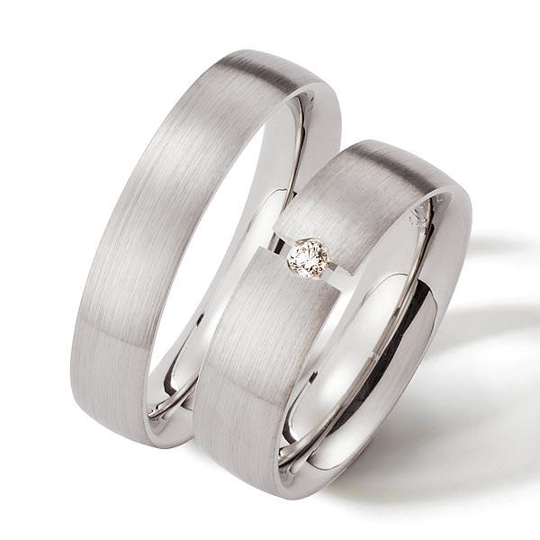 NEUER HERSTELLER: Weidner Trauringe aus Waldstetten. Klassische, schlichte Ringe aus Weißgold 375. 1 Brillant 0,05 ct tw-si.