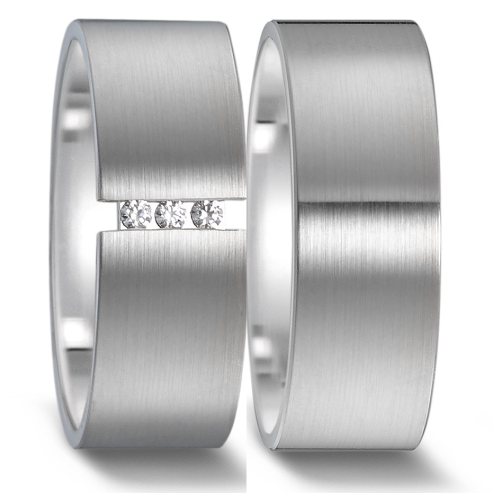 NEUER HERSTELLER: Weidner Trauringe aus Waldstetten. Schöne, schlichte Ringe aus Weißgold 375. 3 Brillanten 0,045 ct tw-si.