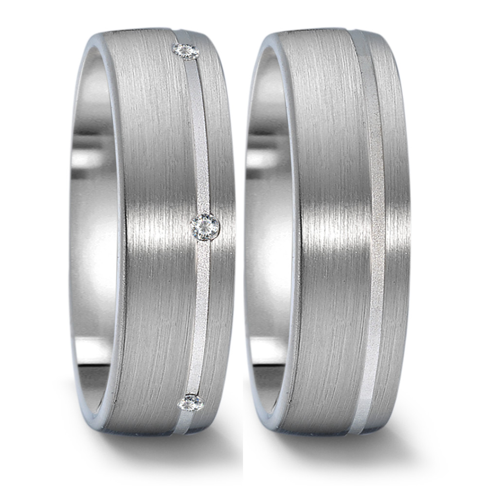 NEUER HERSTELLER: Weidner Trauringe aus Waldstetten. Klassische, schlichte Ringe aus Weißgold 375. 6 Brillanten 0,06 ct tw-si.