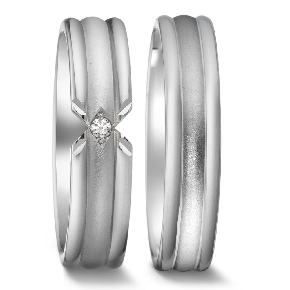 NEUER HERSTELLER: Weidner Trauringe aus Waldstetten. Klassische, schlichte Ringe aus Weißgold 375. 1 Brillant 0,02 ct tw-si.