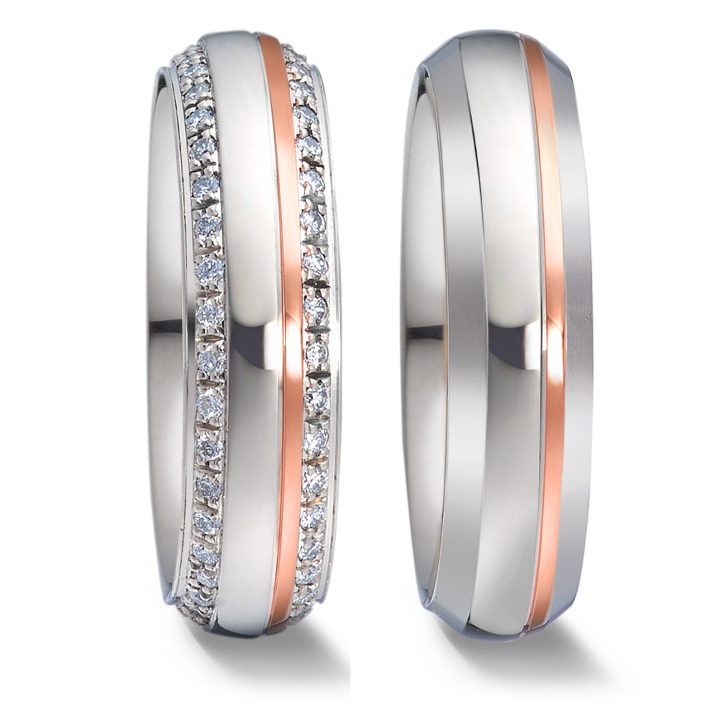 Weidner Trauringe Weiss-Rotgold 76027 + 86027